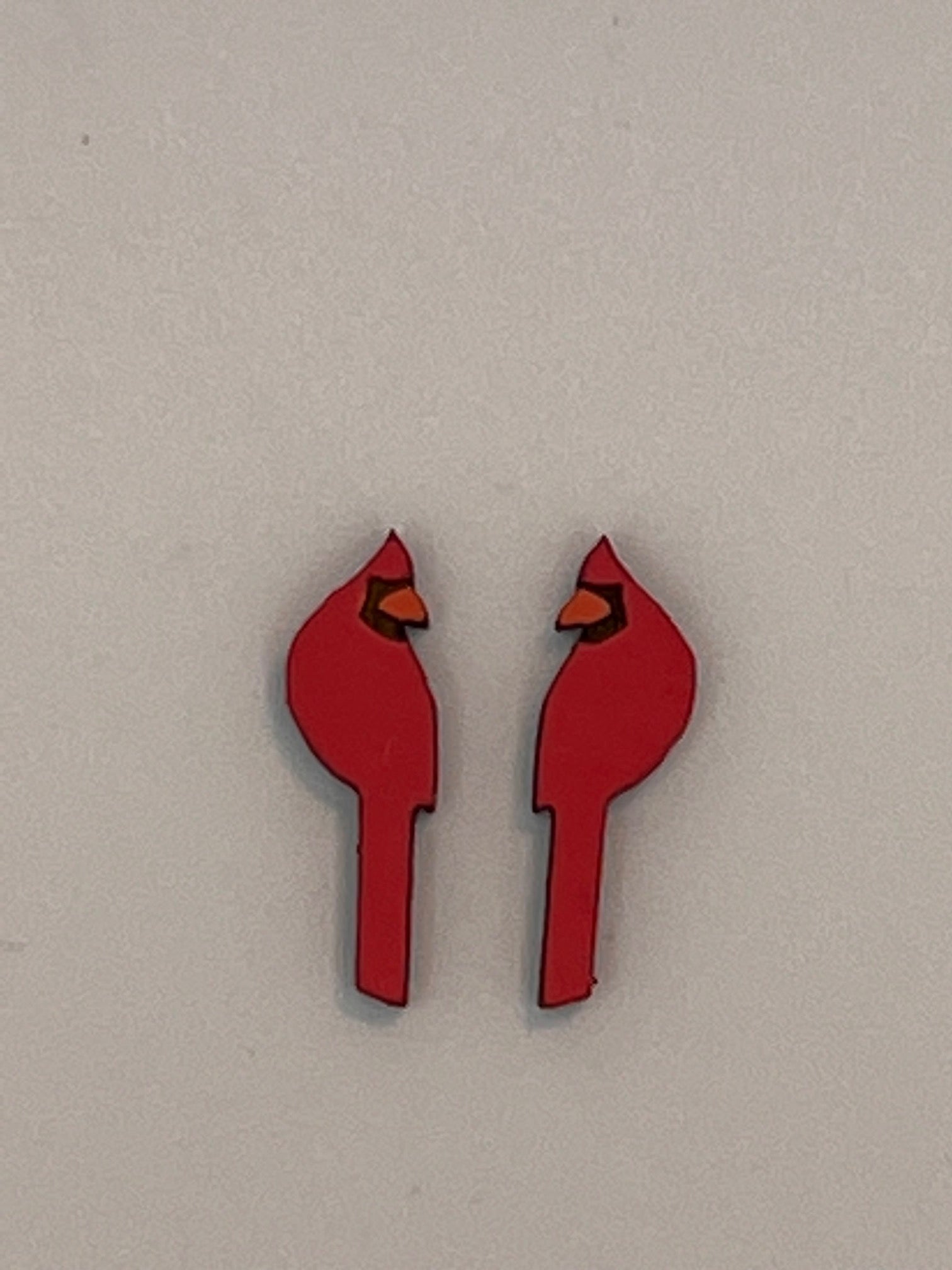 For the cardinal lover in your life. Made from maple wood, these earrings are hypoallergenic and measure 1" high by .332" wide.